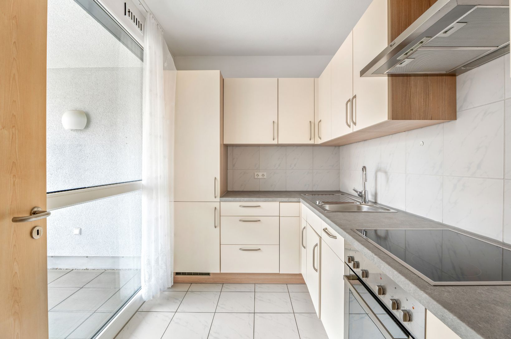 Hochwertiger Parkett betont den gepflegten Charakter, während der Blick zur Stadt und die ruhige Nachbarschaft echte Lebensqualität bieten. Breite Türen, schwellenlose Übergänge und eine bodengleiche Dusche sorgen für hohen Wohnkomfort und machen die Wohnung ideal für Menschen, die Wert auf Barrierefreiheit legen.